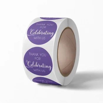 • Wholesale Custom Purple 'THANK YOU US' Adhesive Sticker Valentine's Day Made Vinyl PVC PET Wine Tea Gift Item Label Stamping